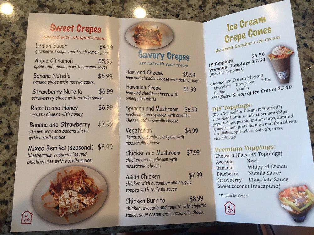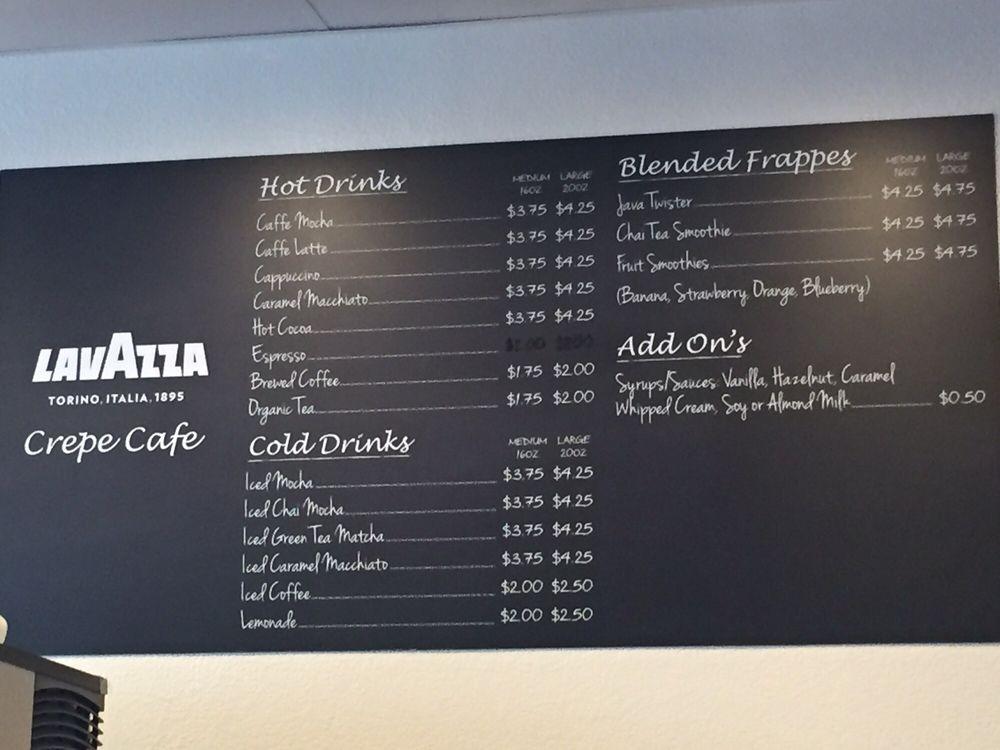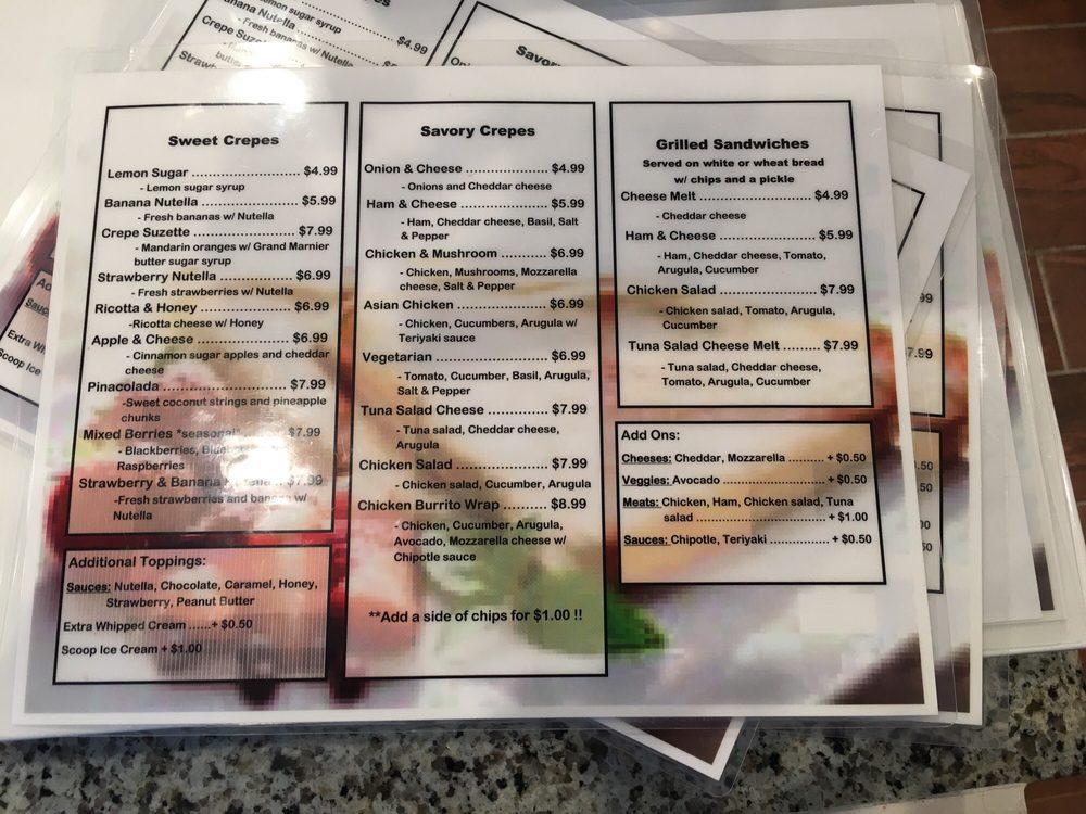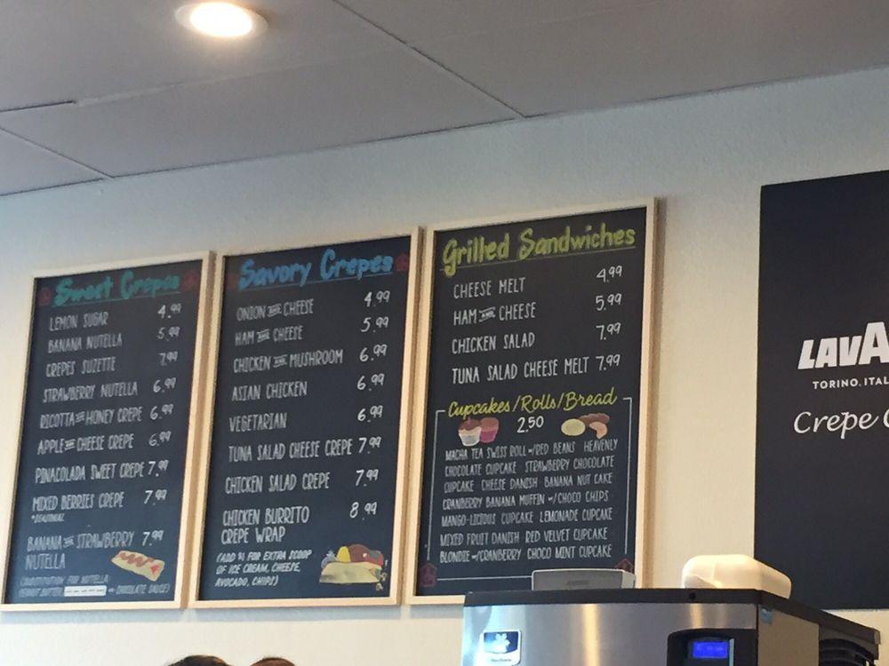 We serve Sweet and Savory Crepes.We have reinvented and improved the taste of our crepe and you should taste the difference! Our LAVAZZA coffee is the finest in Europe. Get a kick and flavor of it!HAPPY HOUR2PM-6PM20% on all crepes!!! :)